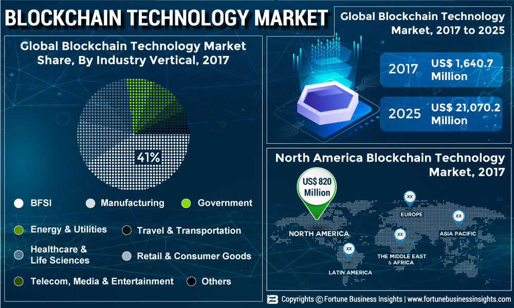 In terms of industry vertical, the banking, financial services, and insurance segment held the leading share of 41% in the global blockchain technology market in 2017. The segment will gain further impetus following the introduction of bitcoin. "Rampantly increasing cyber-attacks and frauds in the BFSI industry accounts for millions of dollars. This has become a global concern. To make the technology used in the industry safer and more secure, Deloitte and Microsoft Azure and other tech giants are offering blockchain services," said a lead analyst.